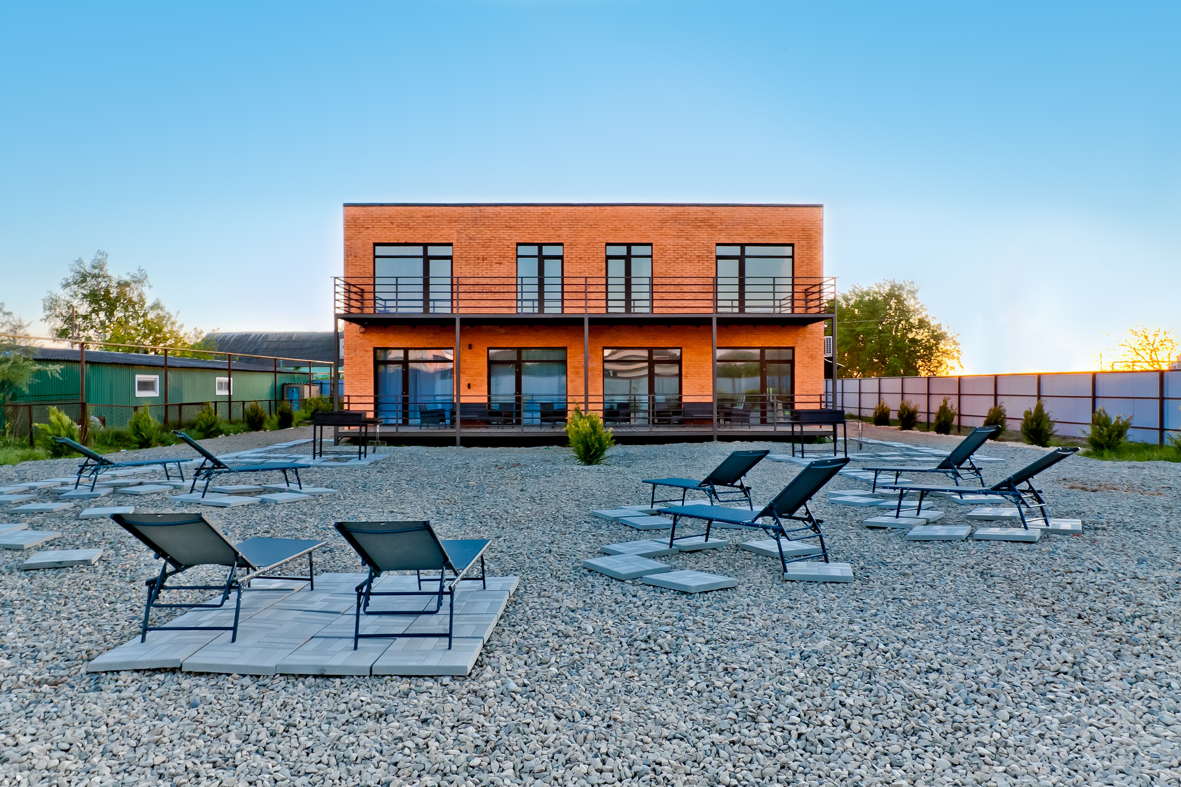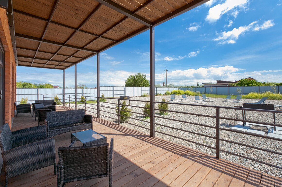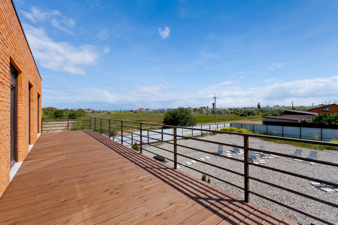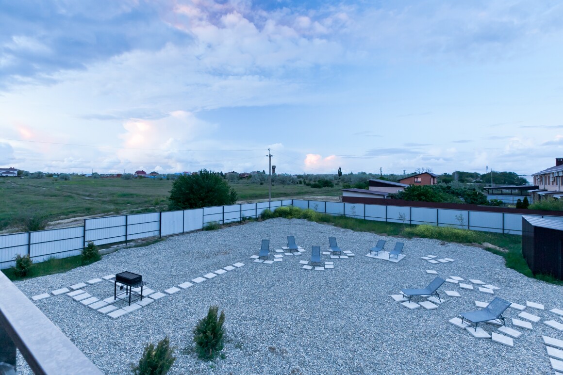 На первом этаже имеется просторная терраса с уличной мебелью, выход на которую идет из кухни-столовой с видом на мангальную и шезлонг зоны. Здесь Вы сможете проводить утреннее время за завтраком, дневное за загаром, а вечером трапезничать на свежем воздухе, приготовив любимые блюда на большом мангале, расположенный вблизи. Мангальная зона оборудована всеми необходимыми мангальными принадлежностями.